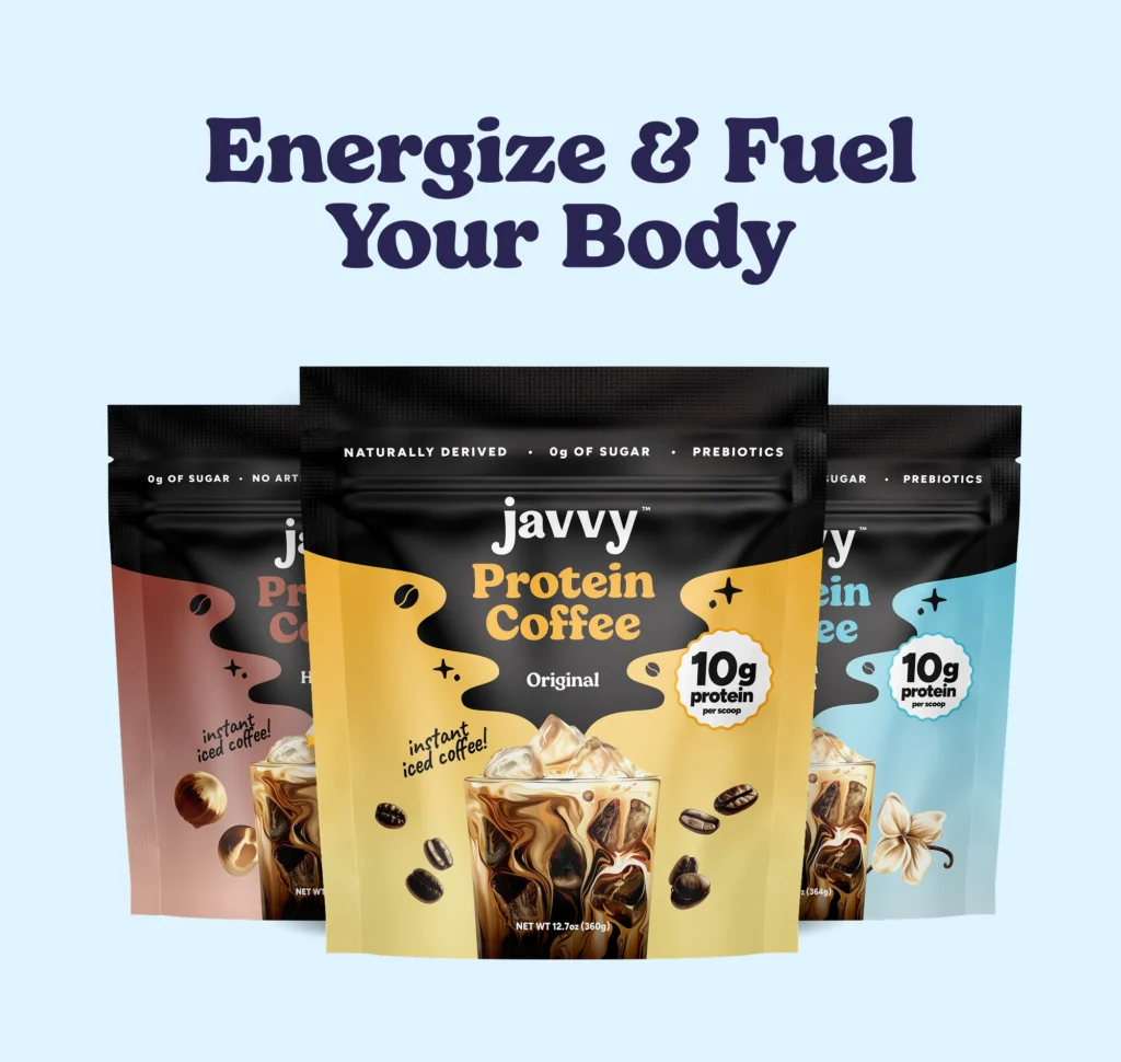 Javvy Protein Coffee isn’t your average cup of joe. It’s a premium instant coffee designed to deliver 10g of protein, 80mg of natural caffeine, and zero sugar per serving. Available in indulgent flavors like Mocha, French Vanilla, Caramel, Hazelnut, Tiramisu, Snickerdoodle, and Cookie Dough, it’s crafted to satisfy your cravings while supporting your wellness goals. Made with just three clean ingredients—100% Arabica coffee, whey protein, and natural flavor—Javvy is gluten-free, free of artificial sweeteners, and packed with functional nutrients.